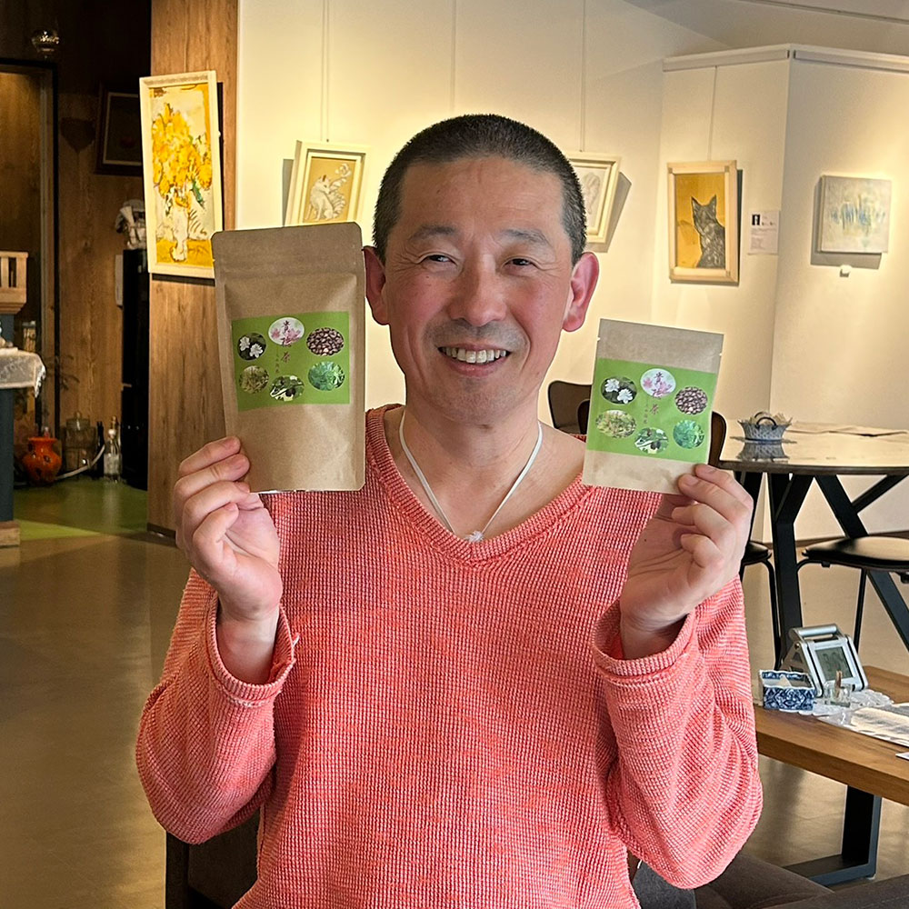 ギャラリーを運営するに際して以前から「形にしたい」と気になっていたアイデアがたくさんあり、それを一つずつ実現していく中で生まれたのがこのお茶です。私は日頃から「食育」について勉強しており、「人間の体は食べるものからできている」と強く実感しています。ただ、私の場合は単なる「体の健康」以上に、「心身のためのもの」という点を大切にしたいと考えていました。そのため、貴徳茶には「こころの循感(心の循環)」というコンセプトを添えているのです。